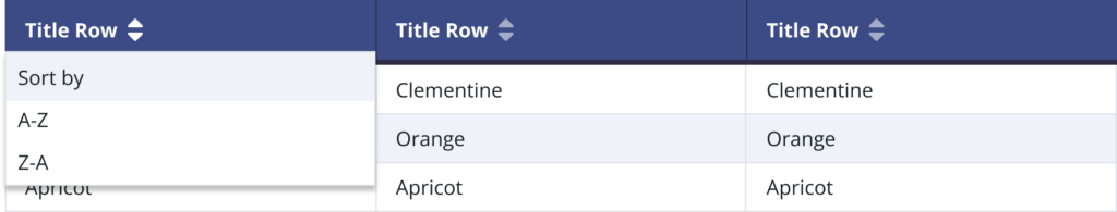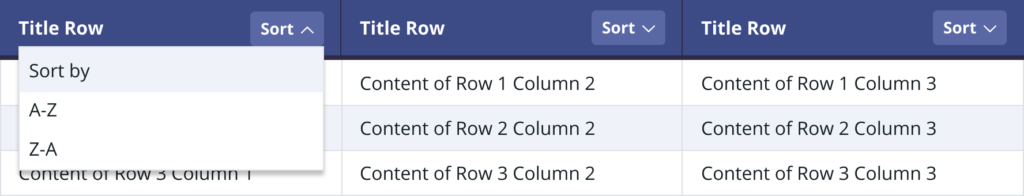 When viewing a table, you’ll often see a sorting icon next to a column header, usually an arrow. Depending on the data, sorting may include: